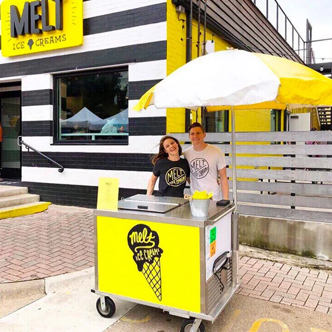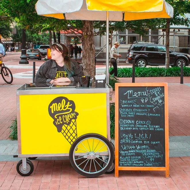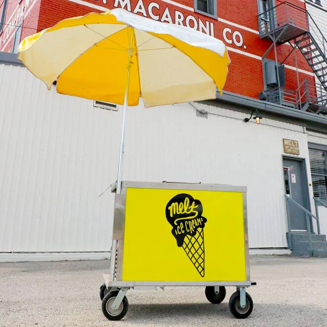 The Melt Happy Cart is perfect for weddings and corporate events, and includes a happy scooper on-site for up to 2 hours. Order up to 5 of our available flavors, with a minimum order of 200 scoops.